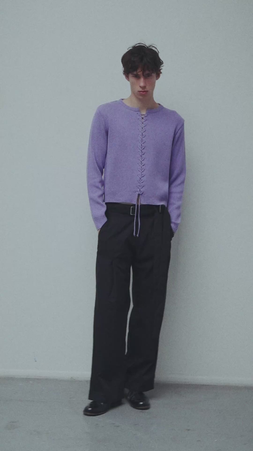 Classic design cardigan with lace-up front fastening and a figure-flattering boxy fit.