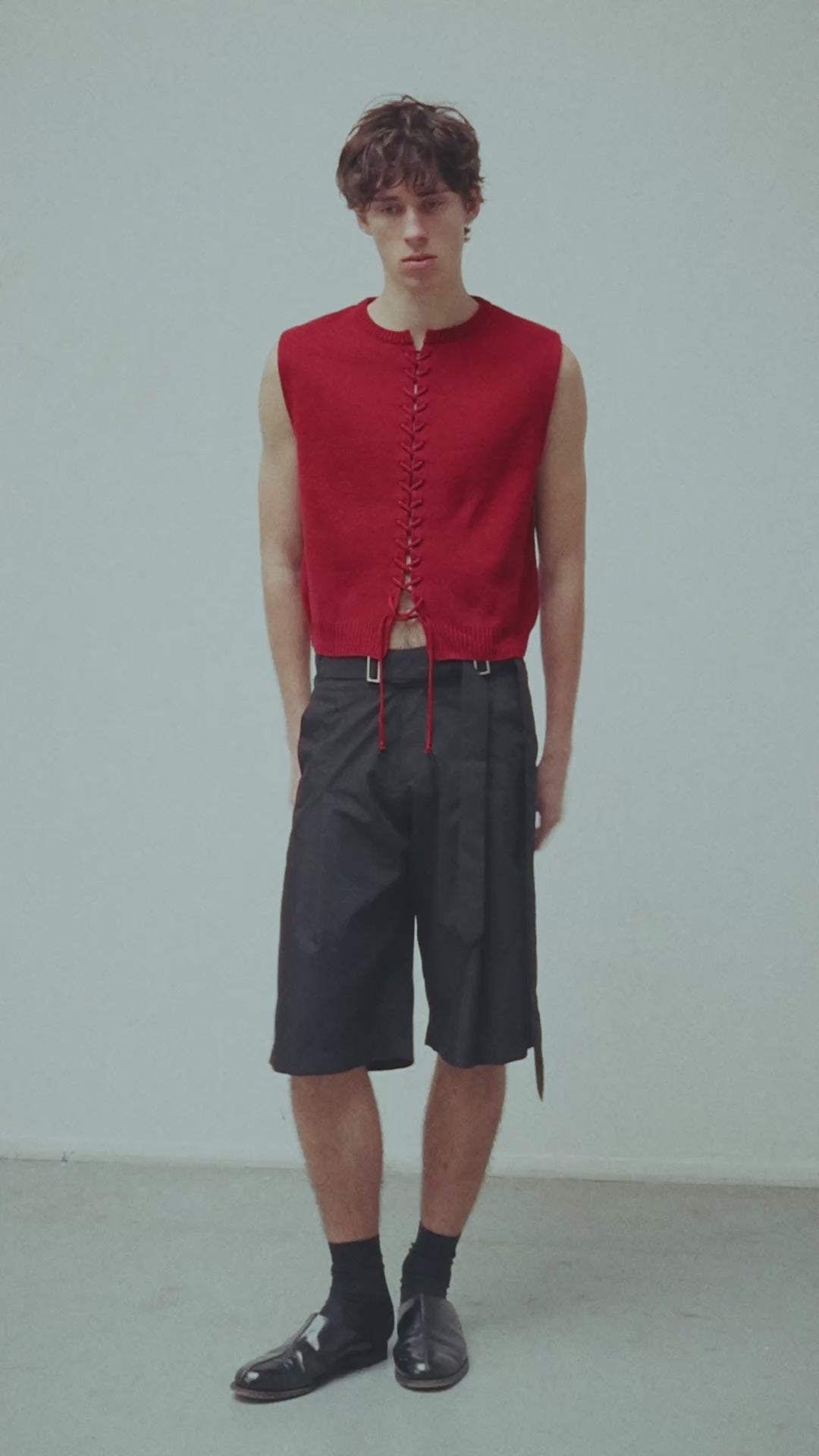 Classic design vest with lace-up front fastening and a figure-flattering boxy fit.
