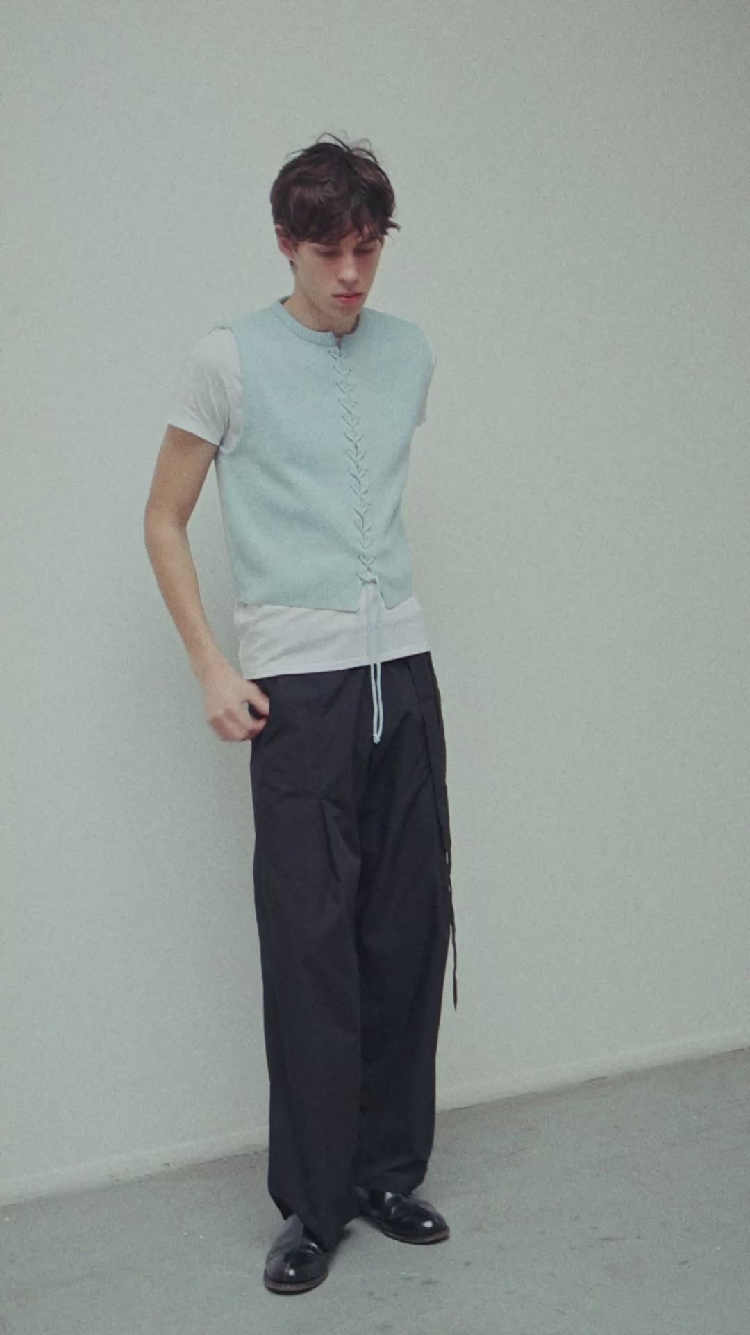 Classic design vest with lace-up front fastening and a figure-flattering boxy fit.